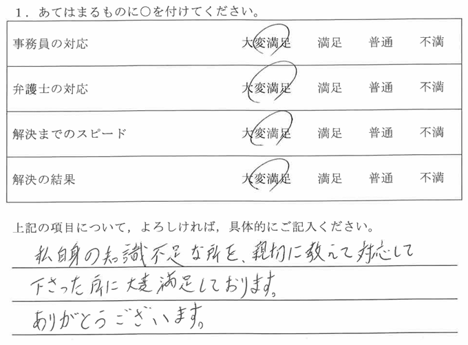 私自身の知識不足な所を、親切に教えて対応して下さった所に大変満足しております。ありがとうございます。